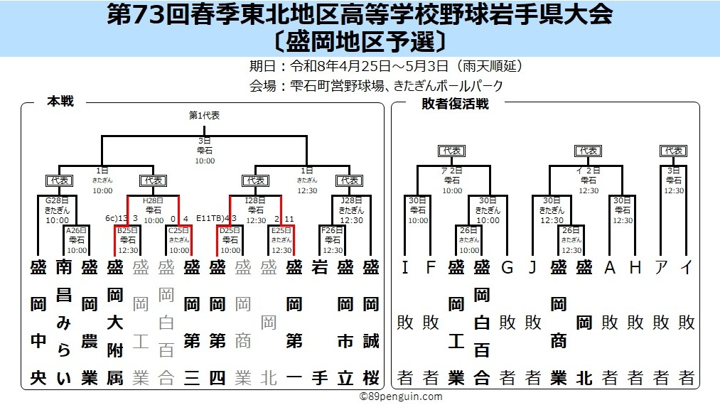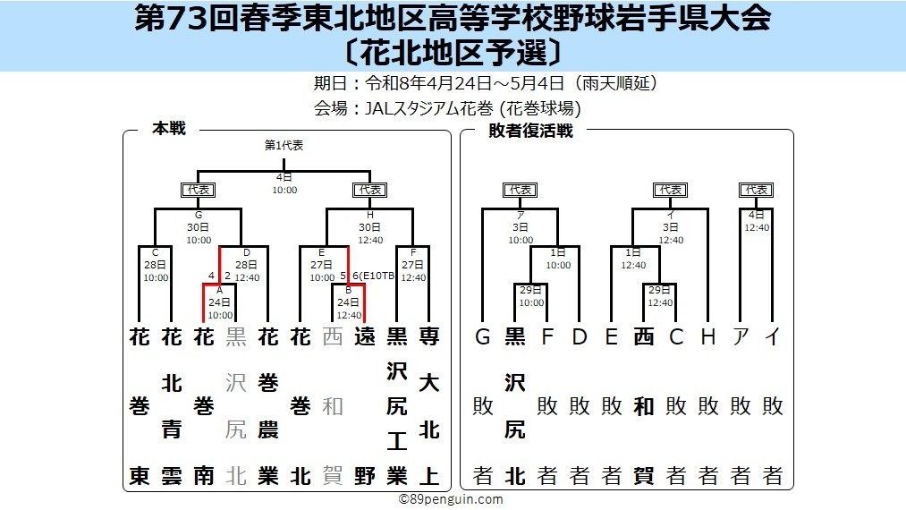 【春季大会】地区予選の組み合わせが決定 花巻東は花北青雲と初戦 盛岡白百合の公式戦初陣は盛岡三と対戦 岩手 - 高校野球