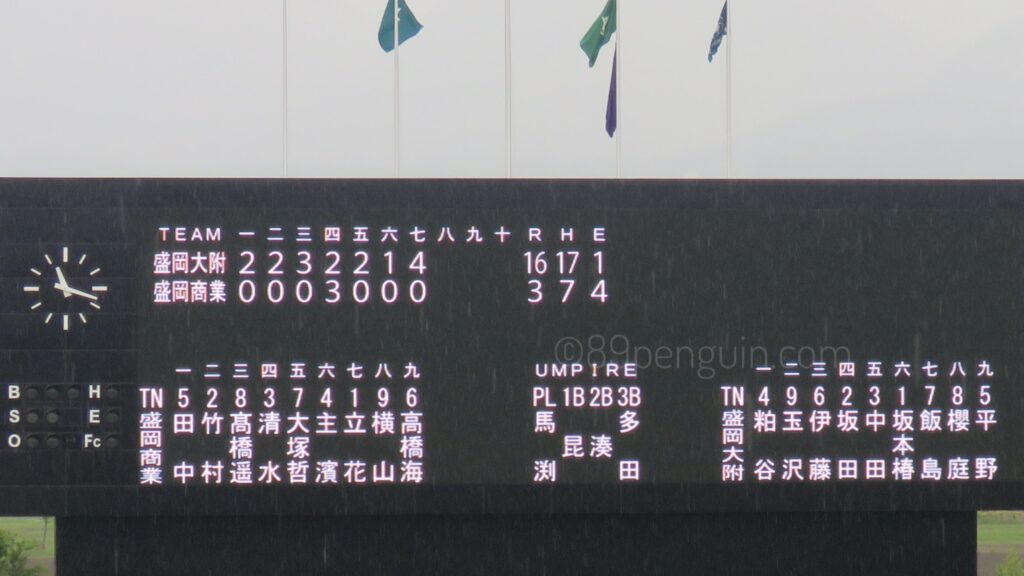 また第2試合では盛岡中央と久慈東が顔を合わせました。両校は前回大会1回戦でも対戦しており、その時は久慈東が盛岡中央のエース齋藤響介投手(現オリックス)を攻略して勝利しました。そして注目の再戦では盛岡中央が大きく突き放されても諦めないで戦い、鮮やかな終盤の逆転劇で雪辱し初戦突破を飾りました。